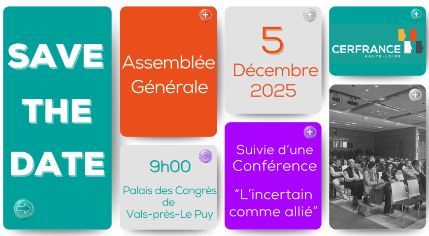 Le Président, les Membres du Conseil d'Administration et le Directeur Général vous convient à l'Assemblée Générale de Cerfrance Haute-Loire.